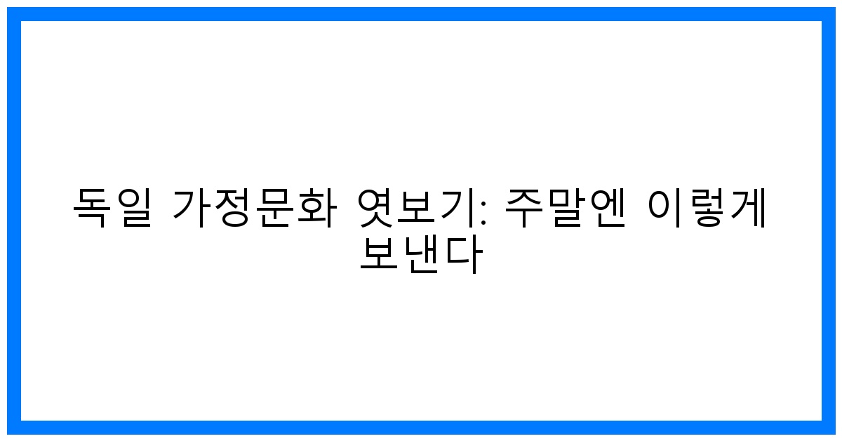 독일 가정문화 엿보기: 주말 일상 & 꿀팁 한국과는 사뭇 다른 독일의 가정 문화! 특히 주말은 독일인들에게 단순한 휴식을 넘어 가족과의