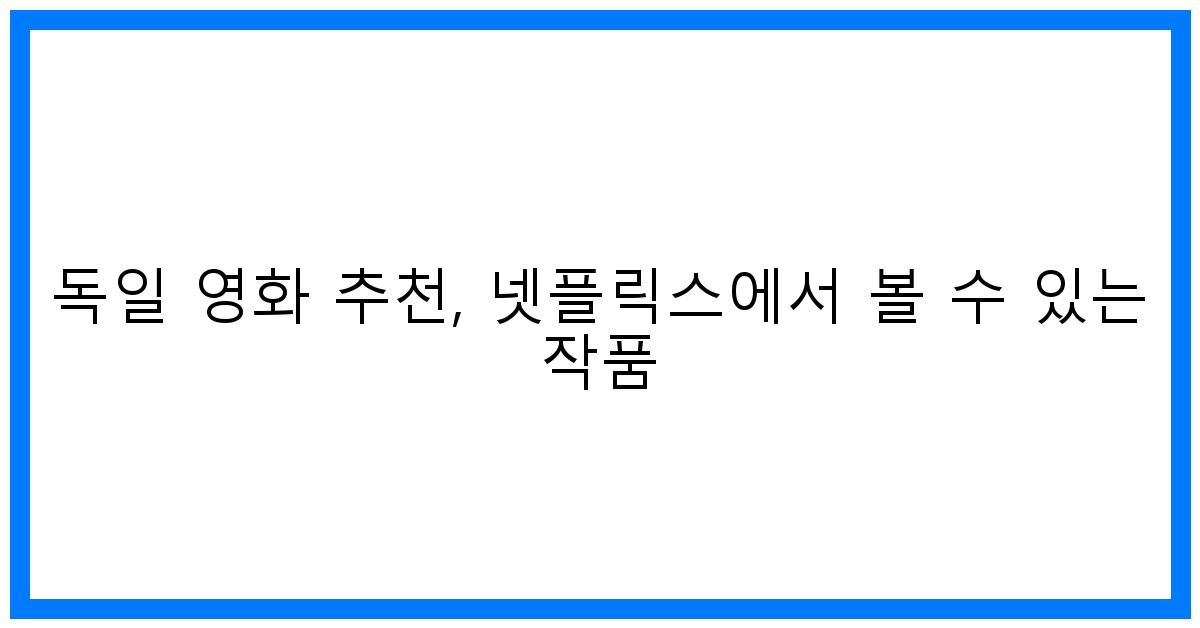 독일 영화 추천: 넷플릭스 인생작 & 숨겨진 보석! 게시물 읽기"